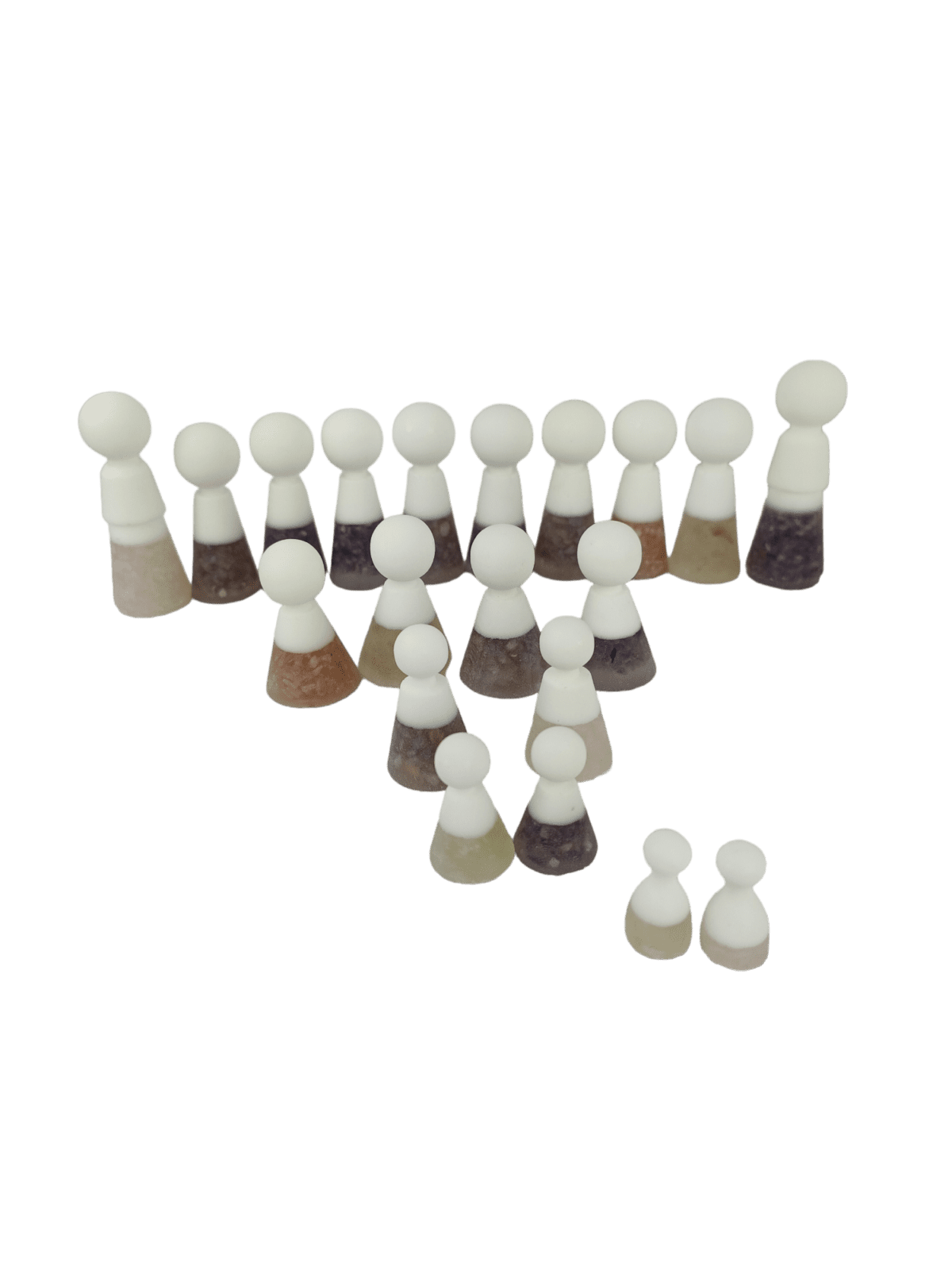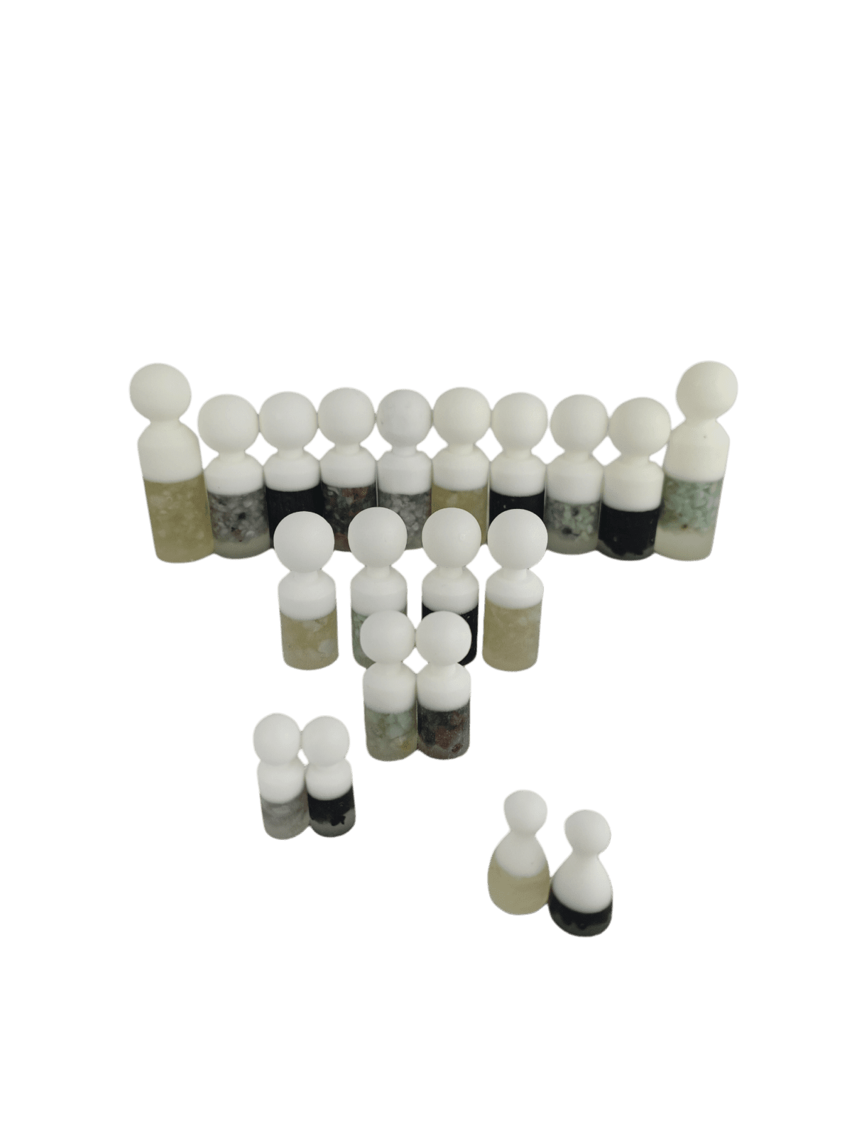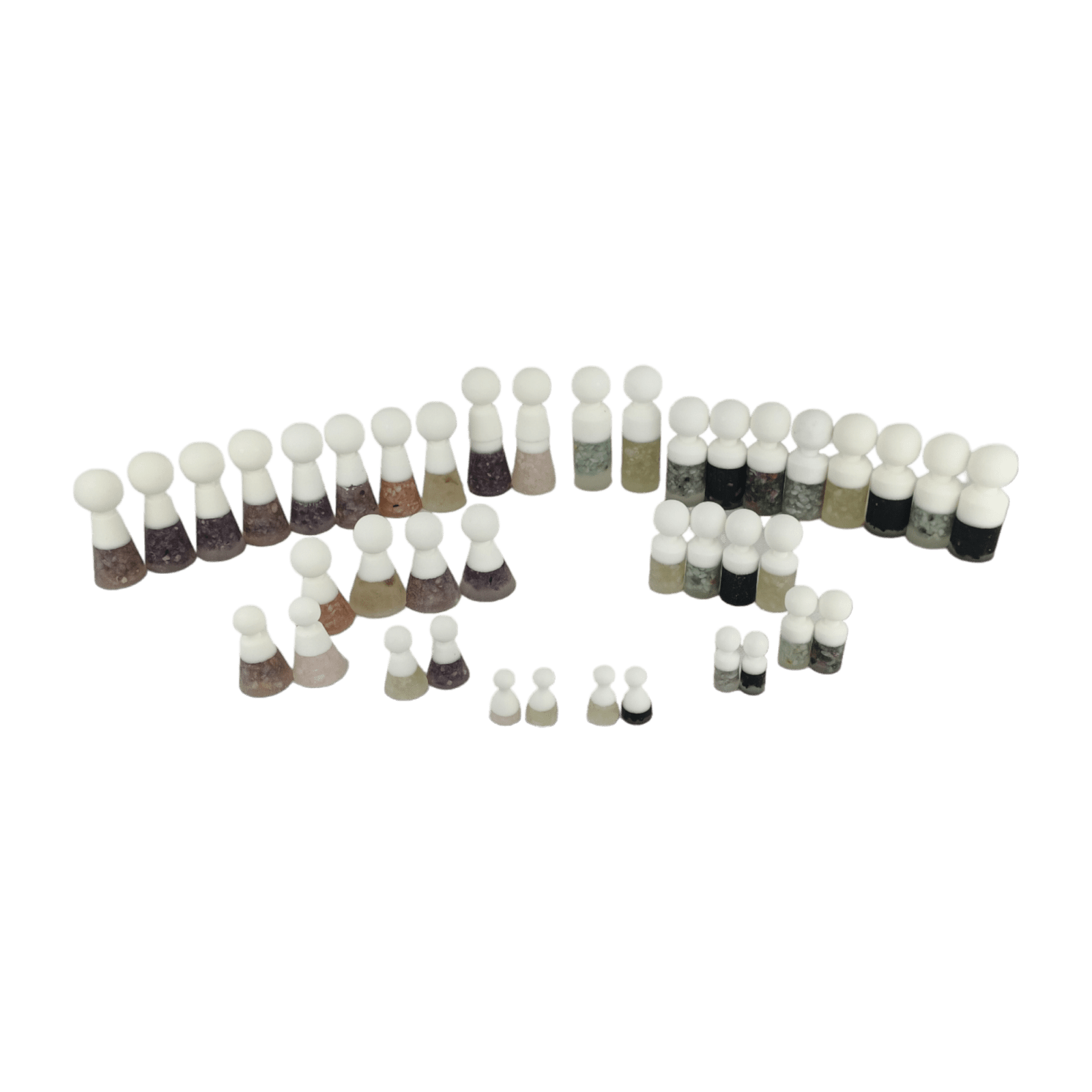 Deze bijzondere set van 40 ambachtelijke poppetjes is niet alleen uniek in vorm en uitvoering, maar ook in energetische werking. Elke poppetje is met zorg gemaakt uit een edelsteen met een eigen, unieke betekenis en energie.