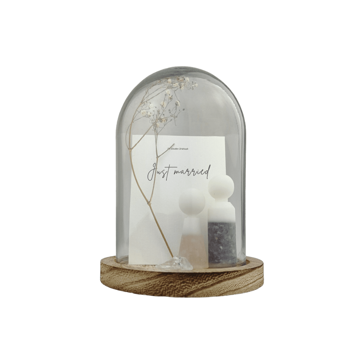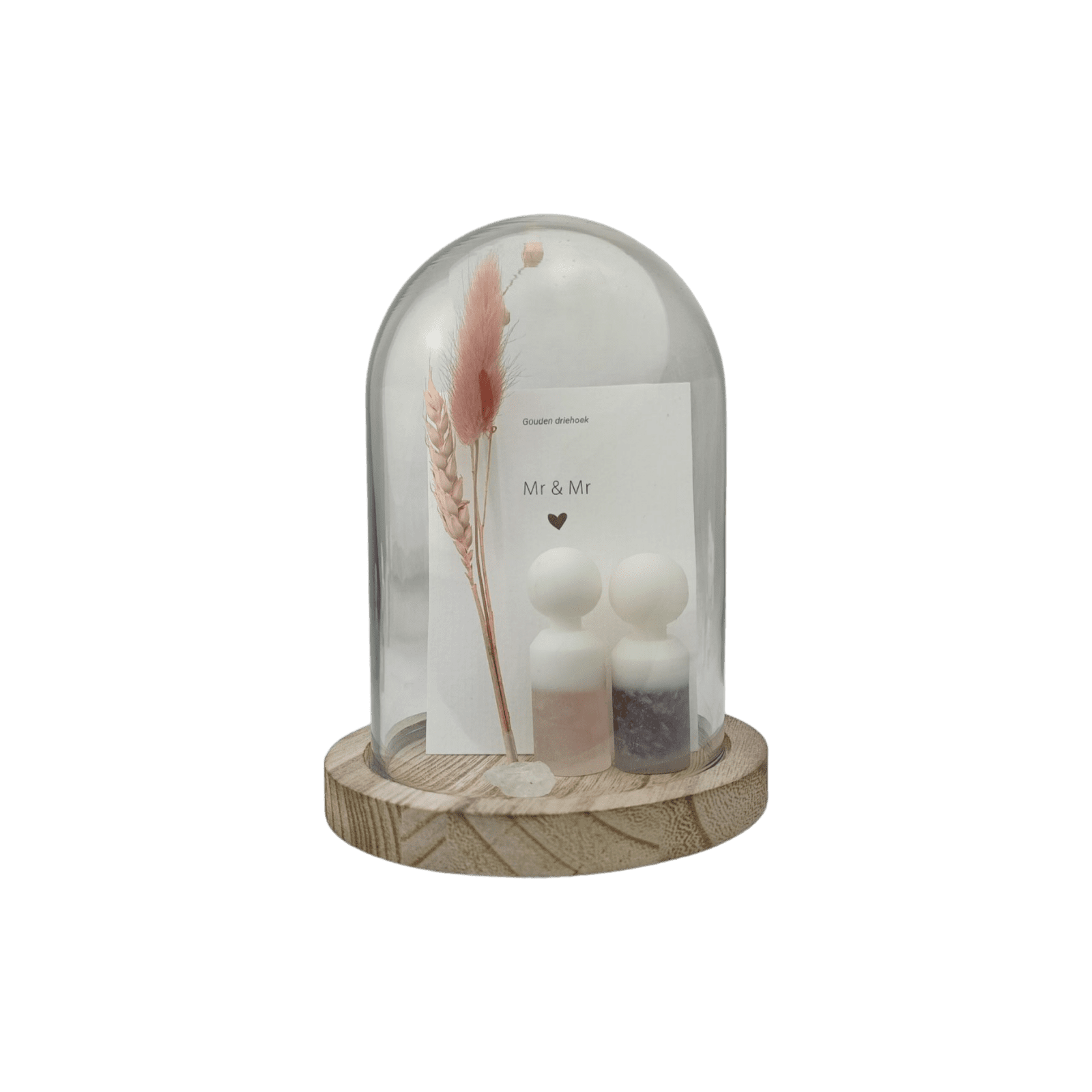 Bergkristalletje & droogbloem voor extra symboliek en sfeer