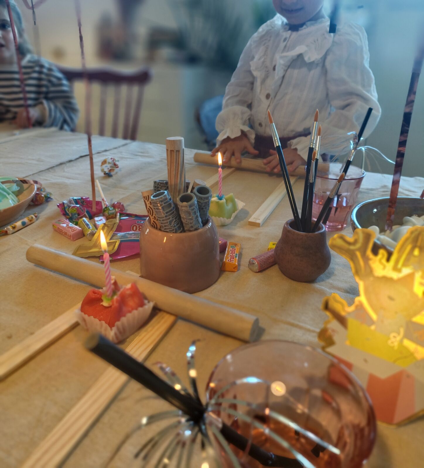 Klei moet heel goed drogen voordat het de oven in mag. Je kan je kunstwerk na ci 4-6 weken komen ophalen in het aterlier.