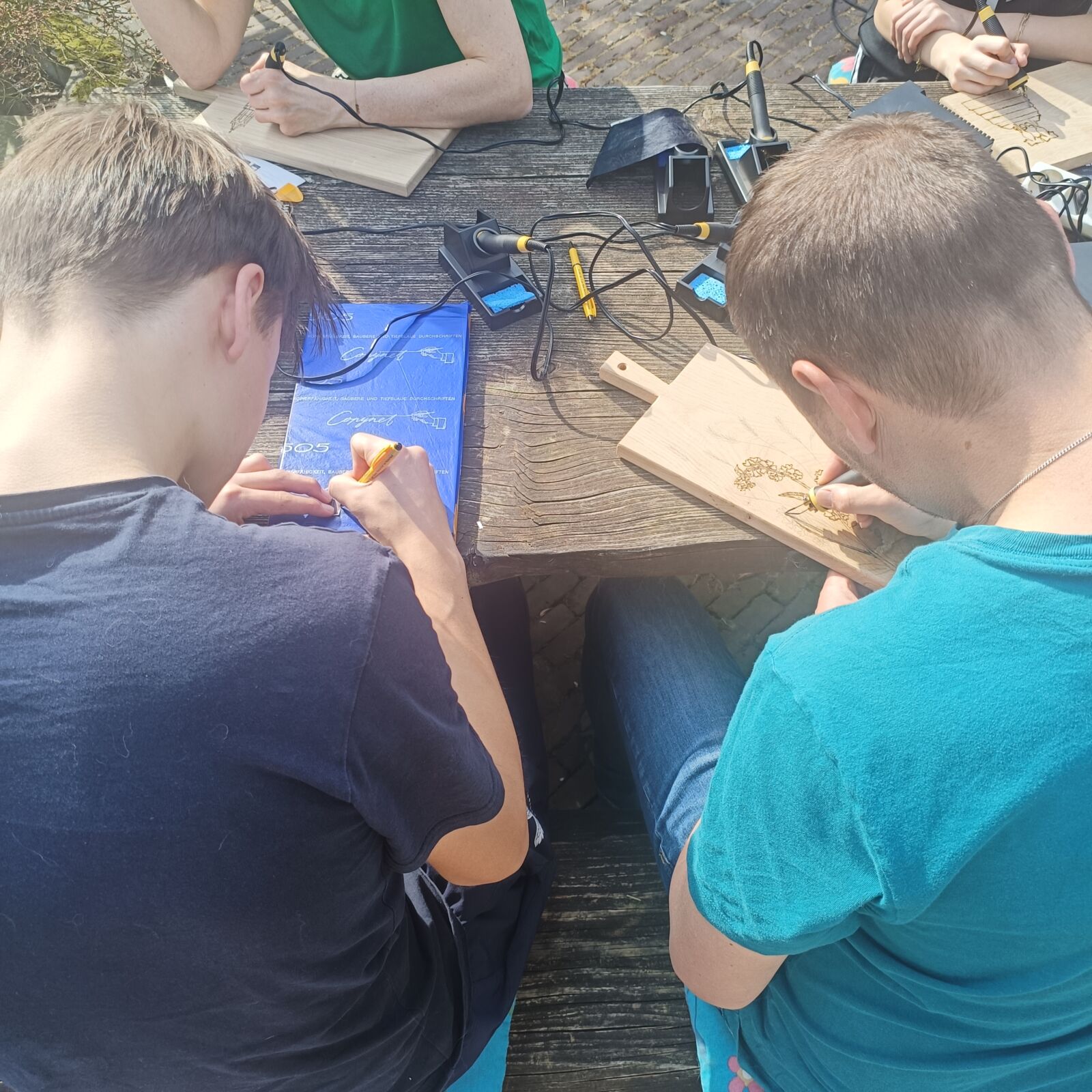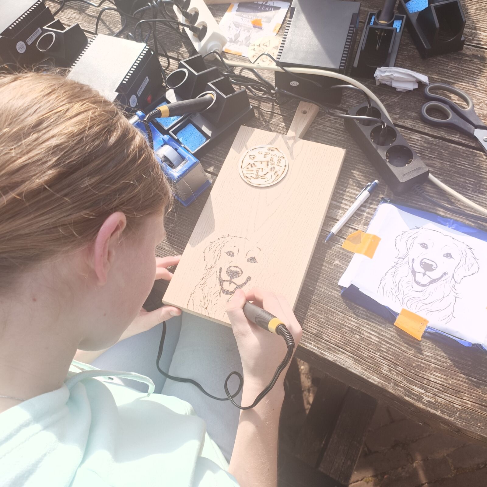 Met een houtbrander ga je het hout graveren. Het is even wennen, maar iedereen vindt z’n flow – en geloof ons: jouw eindresultaat wordt geweldig!
