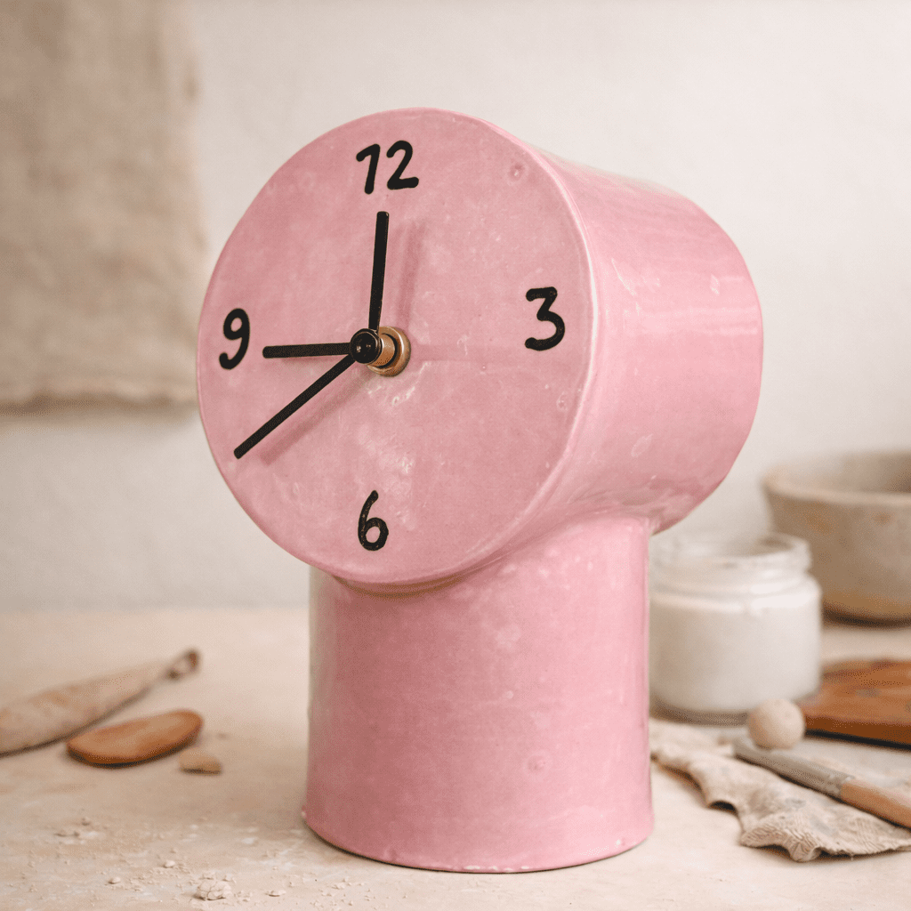 Je klokje wordt standaard afgewerkt met transparante glazuur of één glazuurkleur naar keuze. Wil je het liever zelf glazuren? Dan kun je later een extra glazuurworkshop boeken en je retro klokje op een ander moment afwerken. 🎨